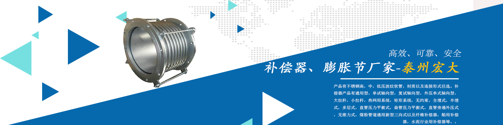 泰州市宏大機械設(shè)備有限公司是一個企業(yè)內(nèi)部管理嚴謹,工作作風穩(wěn)健,職工素質(zhì)水平較高,經(jīng)濟實力雄厚,產(chǎn)品質(zhì)量放心,外部形象良好的企業(yè)。本公司專業(yè)從事補償器廠家,膨脹節(jié)廠家,膨脹節(jié)補償器,其中有不銹鋼高,中,低壓波紋軟管,材質(zhì)以及連接形式任選。補償器產(chǎn)品有通用型,單試軸向型,復(fù)試軸向型,外壓單式軸向型,大拉桿,小拉桿,熱網(wǎng)用系統(tǒng),矩形系統(tǒng),無約束,全埋式,半埋式,多層式,直管壓力平衡式,曲管壓力平衡…...